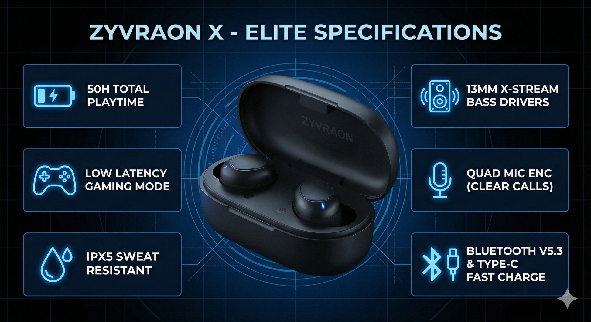 Zyvraon X - Elite Wireless Earbuds | 50H Playtime, ENC & Gaming Mode